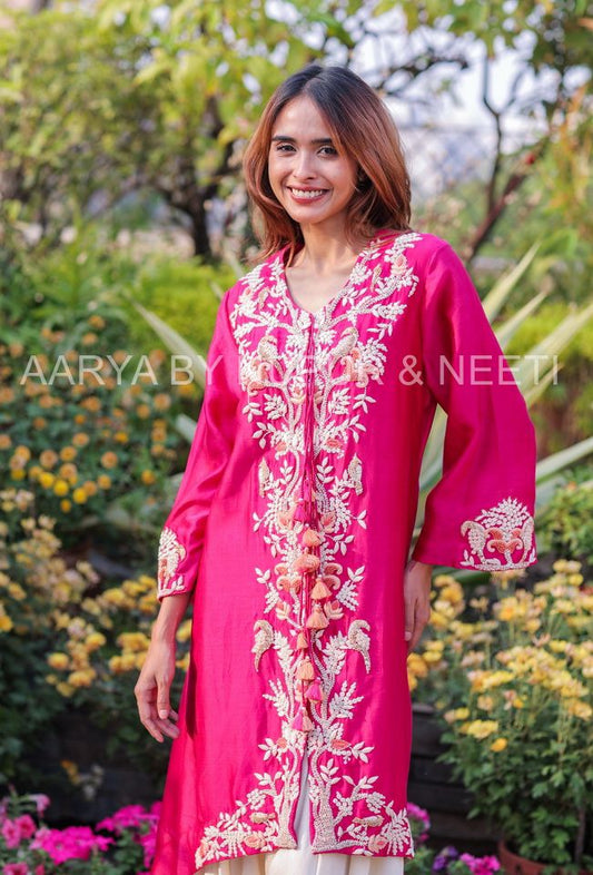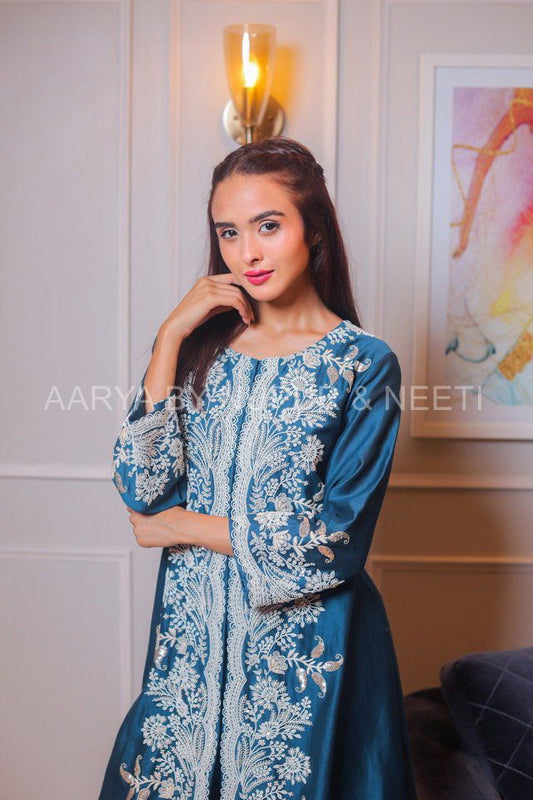 Asymmetrical Kurta With Harem Pants With Pearl Work