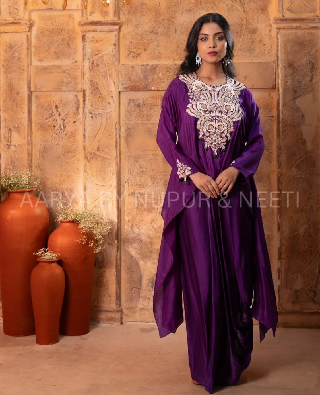 Asymmetrical Kurta With Harem Pants With Pearl Work